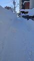 写真は今朝、晴れ間が出た時に撮った、雪の中、どなたかが作った歩行路です。周囲には2メートルほどの雪が積み上げられています。